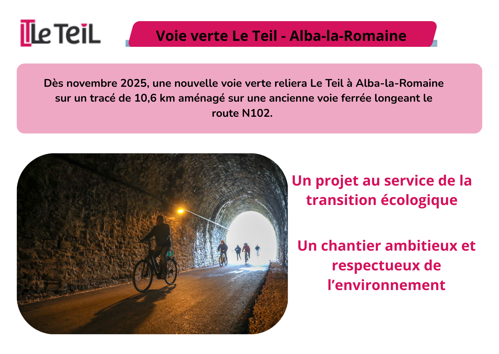 Ce projet s’inscrit pleinement dans la politique de développement des mobilités actives menée par la Commune du Teil.
